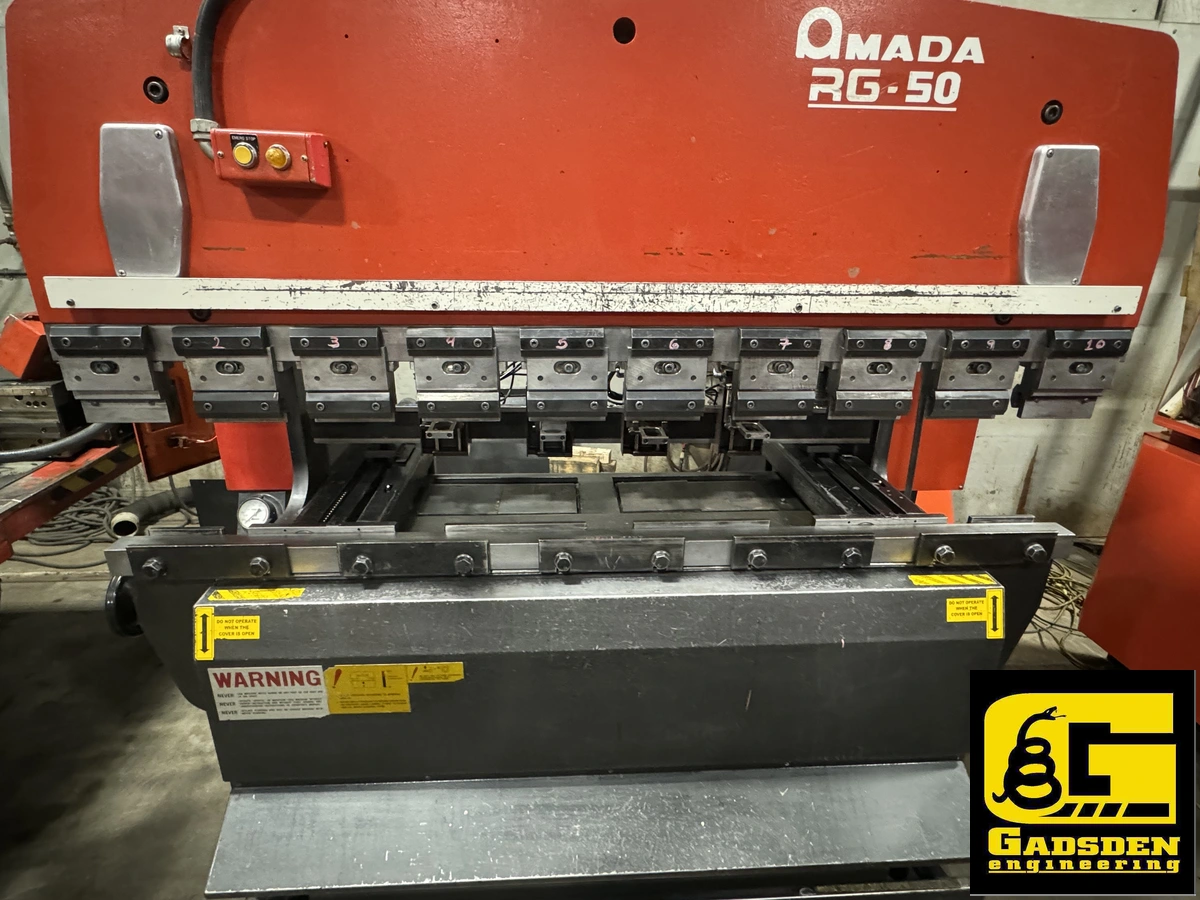 Good used Amada press brake. Includes 4 work stoppers, full set of punch holders and die risers.